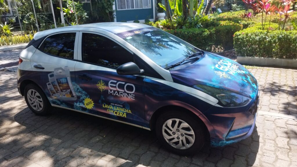 Veículos: envelopamento parcial ou total, transformando frotas e automóveis em meios de comunicação de grande alcance.