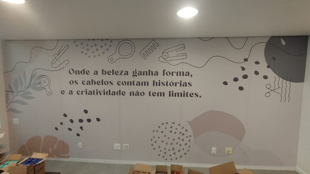 Paredes: personalização de ambientes internos e externos, reforçando a identidade visual de empresas e estabelecimentos.